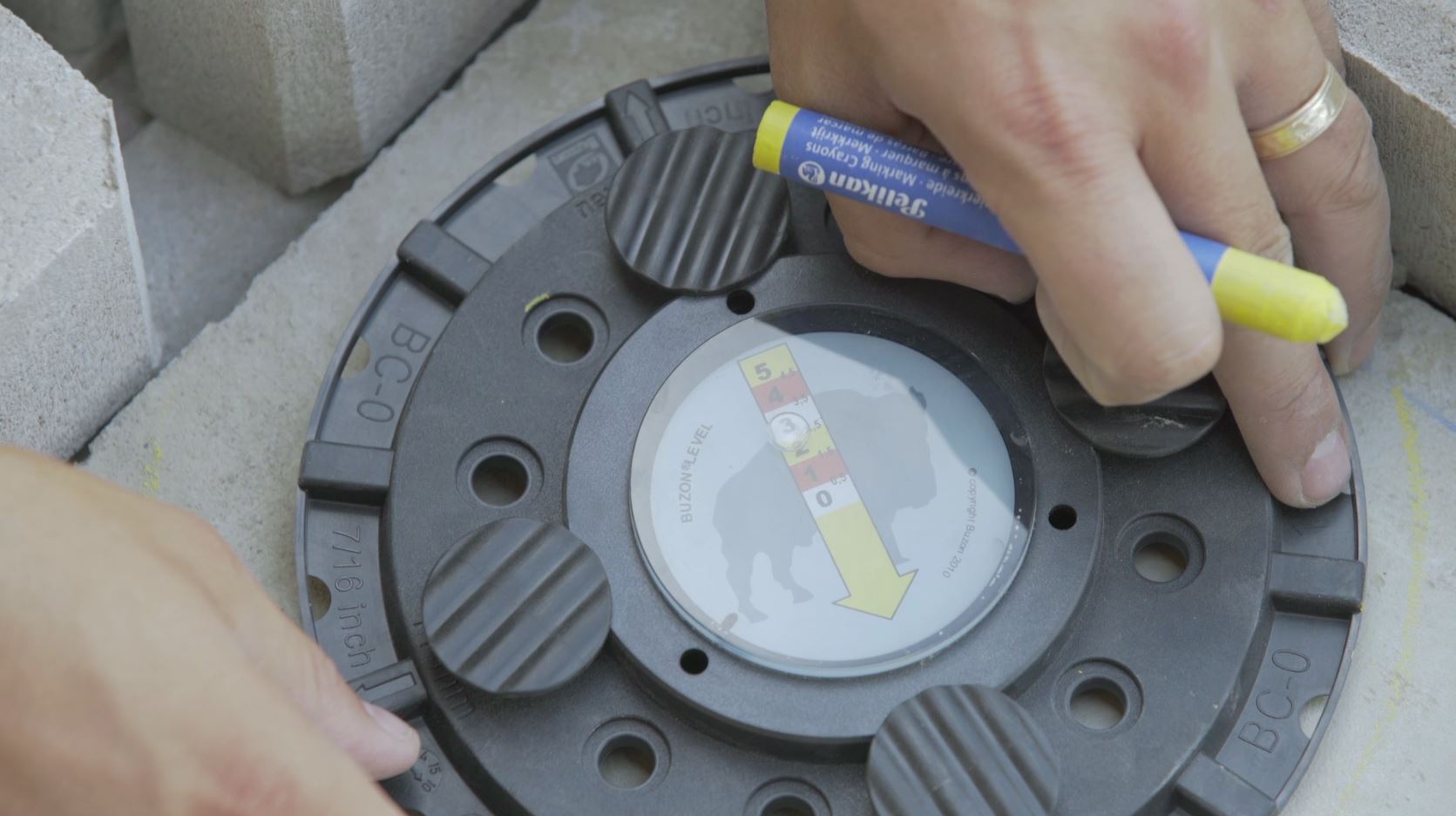 PASO 1: Utiliza el sistema de nivelación Buzon para calcular la inclinación y marcar en qué dirección irá el agua.